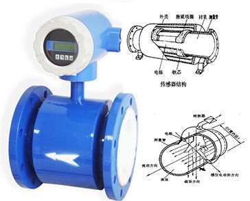 在結(jié)構(gòu)上,電磁流量計(jì)由電磁流量傳感器和轉(zhuǎn)換器兩部分組成。傳感器安裝在工業(yè)過(guò)程管道上,它的作用是將流進(jìn)管道內(nèi)的液體體積流量值線性地變換成感生電勢(shì)信號(hào),并通過(guò)傳輸線將此信號(hào)送到轉(zhuǎn)換器。轉(zhuǎn)換器安裝在離傳感器不太遠(yuǎn)的地方,它將傳感器送來(lái)的流量信號(hào)進(jìn)行放大,并轉(zhuǎn)換成流量信號(hào)成正比的標(biāo)準(zhǔn)電信號(hào)輸出,以進(jìn)行顯示,累積和調(diào)節(jié)控制。