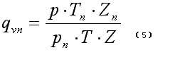 式中,qVn、qV分別為標(biāo)準(zhǔn)狀態(tài)下(0℃或20℃,101.325kPa)和工況下的體積流量; Pn、P分別為標(biāo)準(zhǔn)狀態(tài)下和工況下的絕對(duì)壓力;Tn、T分別為標(biāo)準(zhǔn)狀態(tài)下和工況下的熱力學(xué)溫度;Zn、Z分別為標(biāo)準(zhǔn)狀態(tài)下和工況下氣體壓縮系數(shù)。