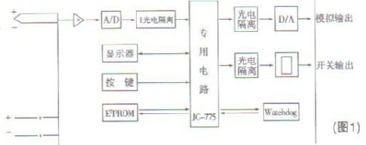 智能流量積算儀是由測量回路、數(shù)字面板表、調(diào)節(jié)器和電源四個部分組成。穩(wěn)壓電源將220V供電轉(zhuǎn)換成穩(wěn)定的直流電壓作為其它部分電源。測量回路將流量變送器送來的信號(電壓、電流等)經(jīng)過處理后,變?yōu)殡妷盒盘。該信號?jīng)過A/D轉(zhuǎn)換后輸送到JC-775專用中央處理器進(jìn)行處理后,不僅要送到數(shù)字面板表,而且也要送到調(diào)節(jié)器,與設(shè)定值比較后按調(diào)節(jié)規(guī)律輸出控制或報(bào)警信號。工作原理框(圖1)