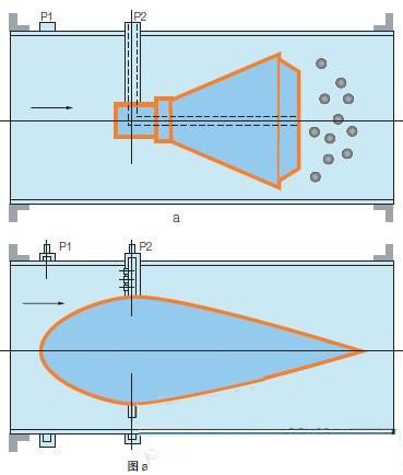 在同一密閉管道內(nèi),當壓力降低時,速度會增加,當介質(zhì)接近錐體時,其壓力為P1,在介質(zhì)通過錐體的節(jié)流區(qū)時,速度會增加,壓力會降低為P2,如圖一所示,P1和P2都通過V型錐形流量計的取壓口引到差壓變送器上,流速發(fā)生變化時,差壓值會隨之增大或減小。也就是說對于穩(wěn)定流體,流量的大小與差壓平方根成正比。當流速相同時,錐體節(jié)流面積越大,則產(chǎn)生的差壓值也越大。V型錐流量計屬精度、高穩(wěn)定性的新型差壓式流量儀表。