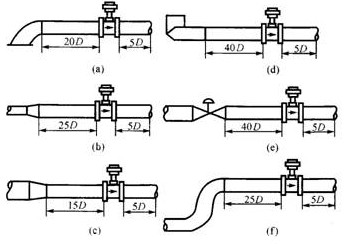 - 為了確保儀表正常、準確運行,傳感器安裝點的上下游必須有一定的直管道,以調(diào)整流場。