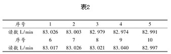 1 前言 目前,工業(yè)領(lǐng)域面臨著能源過度的問題,節(jié)能減排已成為大型生產(chǎn)企業(yè)急需解決的課題。流量計作為生產(chǎn)線的重要計量器具,不僅是直接反映生產(chǎn)能耗的基礎(chǔ)設(shè)備,也是控制能耗的首要環(huán)節(jié)。由于生產(chǎn)計劃,許多企業(yè)的流量計無法被卸下而需要在線校準。超聲波流量計作為一種精度高、非接觸式、易攜帶安裝的計量器具,廣泛被應(yīng)用于流量計的在線校準。因此,本文介紹如何應(yīng)用超聲波流量計在線校準浮子流量計并對其過程進行測量不確定度的評定。 2 超聲波流量計工作原理 超聲波在流體中的傳播速度與流體的流速有關(guān)。沿流體的順流方向,超聲波的傳播速度增大;逆流方向的傳播速度減小。同一超聲波沿流體不同流向產(chǎn)生了時間差,該差值與流體的流速存在一定的關(guān)系。假設(shè)直段管道內(nèi)有2個超聲波傳感器,傳感器1位于流體上游,傳感器2位于流體下游,則傳感器之間存在如下關(guān)系: (1) (2) 式中:L—兩個超聲波傳感器之間的直線距離; T12—沿流體逆向,超聲波從傳感器1傳播至傳感器2所用的時間; T21—沿流體順向,超聲波從傳感器2傳播至傳感器1所用的時間; C—超聲波在靜止流體中的傳播速度; x—L在管道中沿管道軸向的分量。 根據(jù)上式可知:當傳感器的位置和管道幾何參數(shù)為已知量,則流體的流速正比于時間項。 3 浮子流量計在線測量 3.1 校準環(huán)境與安裝條件 超聲波流量計是根據(jù)超聲波在管道內(nèi)傳播時間差反映流體流速的,所以被測段的流體狀態(tài)對測量結(jié)果影響很大。測量時,應(yīng)避免被測段的流體處于湍流狀態(tài)。一般應(yīng)注意以下幾點: (1)計量現(xiàn)場應(yīng)無明顯振動,周圍無電磁干擾。 (2)探測器安裝位置的上游直管段長度至少為管徑的10倍以上,下游的直管段長度至少為管徑的5倍以上;上游30倍管徑的沿程內(nèi)應(yīng)沒有擾流因素,比如泵、閥引起的流速分布不均勻。 (3)管道始終充滿流體,流體內(nèi)不能含有大量的氣泡或異物。 (4)對于水瓶管道,為了避免滯留空氣或沉積物影響測量結(jié)果,在水平面的±45°內(nèi)安裝探測器。避免將探測器安裝在管道變形、凸起或焊接部分。 (5)如管道表面有涂層、腐蝕班或是不平整,用油漆稀釋劑和砂紙清除。 (6)查看被檢的浮子流量計是否有泄漏、振動的情況,刻度是否清晰,便于觀察。 (7)對于1.0和1.5級的浮子流量計,安裝傾斜角度不應(yīng)超過2°;2.5級及以下的浮子流量計不應(yīng)超過5°。 3.2 探測法的選擇 根據(jù)探測器的分布位置,探測法分為V法和Z法。V法:兩探測器均處于管道外同側(cè),探測器之間連線與管道軸線平行。Z法:兩探測器處于管道外兩側(cè),兩探測器之間連線與管道軸線交叉。在下列情況下使用Z法: (1)需要節(jié)省安裝空間(Z法的安裝空間約為V法的一半)。 (2)需要測量污水等渾濁的流體。 (3)管道內(nèi)有砂漿襯里或是較厚水垢。 3.3 測量步驟 (1)確認管道的內(nèi)、外徑;對于非標準的管道,用游標卡尺和測厚儀等工具測量管道的外徑與壁厚。 (2)在儀表中輸入相關(guān)參數(shù):管道內(nèi)、外徑;管道材料;流體介質(zhì);探測法類型等。 (3)待儀表調(diào)零后確定探測器安裝距離。 (4)在探測器表面涂上適量硅脂,根據(jù)“安裝條件”安裝探測器,查看超聲波信號接受是否正常。 (5)待被檢流量計與超聲波流量計讀數(shù)穩(wěn)定后,讀取兩儀表的流量值,計算示值誤差。 3.4 注意事項 (1)當超聲波流量計信號異;蚴菬o信號時,查看管道表面是否有涂層、探測器是否緊貼管道表面。在排除上述問題但仍信號異常的情況下,查看現(xiàn)場周圍是否有電磁干擾,比如:大功率水泵、變頻器、變壓器等。 (2)當測量值與被檢示值存在明顯偏差時,查看探測器安裝位置是否合理。在滿足安裝條件的情況下,盡可能對安裝位置做調(diào)整:同一條管道布置有高低時,探測器安裝在較低的管路上;探測器盡量不要靠近管路的終端;盡量選擇流體向上流動的管路安裝探測器;管路內(nèi)結(jié)垢嚴重,更換管路。 (3)當測量值存在明顯波動時,適當設(shè)置阻尼參數(shù),延長響應(yīng)時間。 (4)當流量發(fā)生變化但測量值保持不變時,檢查管道規(guī)格是否正確;探測器是否安裝在焊接部分;探測器安裝尺寸是否正確;探測器表面是否涂有足夠的潤滑脂;嘗試更換探測法類型;避免使用加長電纜。 4 不確定度評定實例 本文利用超聲波流量計在線校準浮子流量計,流量范圍:(16~160)L/min,流體介質(zhì)為水。 4.1 測量模型 利用超聲波流量計在線計量浮子流量計,相當于采用標準表法進行計量。標準流量計和被檢流量計串聯(lián)在現(xiàn)有的流量管道上,刻度狀態(tài)相同,流量無需經(jīng)過修正。示值誤差根據(jù)下式: (3) 式中:qm—被檢浮子流量計的流量顯示值,L/min; qv—標準超聲波流量計的流量實際值,L/min; qmax—被校流量計的上限刻度值,L/min。 標準不確定度: 靈敏系數(shù):c1=1/qmax;c2=-1/qmax 4.2 不確定度的來源: (1)輸入量qm的不確定度 測量的重復性引入的不確定度:u(qm) 浮子流量計在80L/min時,對被檢流量計測量10次,結(jié)果如表1。 表1 測量平均值 ,標準方差S=0.13L/min,u(qm)= 。 (2)輸入量qv的不確定度: ①測量重復性或儀表分辨力引入的不確定度:u1(qv) 超聲波流量