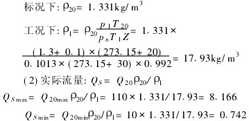 式中:ZS(ZSN)為被測氣體在標準狀態(tài)(工作狀態(tài))下壓縮系數(shù)(一般情況ZSUZSN);QS為工況下氧氣的實際流量;QN為標況下空氣的實際流量;QN為標況下空氣的密度(11293kg/m3);pN為標準大氣壓;TN為標準溫度293115K;QSN為標況下氧氣的密度(即Q20);pS為氧氣實際工作壓力(即p1);TS為氧氣實際工作溫度(即T1)。