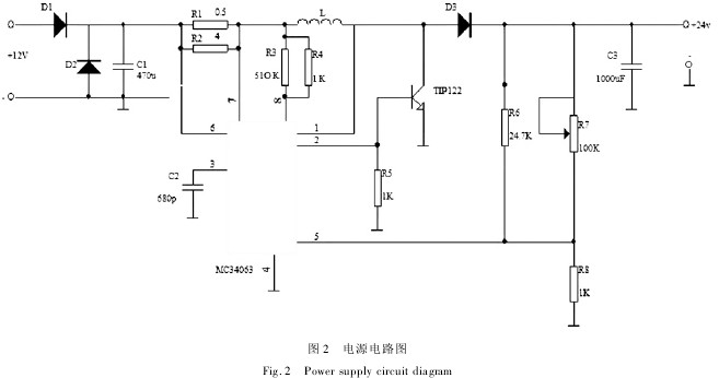 0引言 液位包括液位信號(hào)器和連續(xù)液位測(cè)量?jī)煞N。液位信號(hào)器是對(duì)幾個(gè)固定位置的液位進(jìn)行測(cè)量,用于液位的上、下限報(bào)警等;連續(xù)液位測(cè)量是對(duì)液位連續(xù)地進(jìn)行測(cè)量,廣泛應(yīng)用于農(nóng)田灌溉、定量施量、高爐沖渣水位測(cè)量、環(huán)境監(jiān)測(cè)等農(nóng)業(yè)生產(chǎn)領(lǐng)域,具有非常重要的意義。目前,對(duì)液位測(cè)量的精度要求不僅愈來愈高,且需要測(cè)量?jī)x能夠適應(yīng)一些特殊環(huán)境,如高溫、高壓、強(qiáng)放射性及強(qiáng)腐蝕性等條件。液態(tài)肥因其生產(chǎn)費(fèi)用低、肥效高、易吸收、節(jié)支增產(chǎn)效果顯著及施用過程中可以根據(jù)需要加入土壤所缺少的植物營(yíng)養(yǎng)元素等優(yōu)勢(shì)迅速得到了廣泛應(yīng)用。而變量施肥作為農(nóng)業(yè)的重要部分,其技術(shù)基礎(chǔ)就是對(duì)液肥液位的準(zhǔn)確控制。目前市場(chǎng)上,液位控制系統(tǒng)大致可分為以下兩種: 1)機(jī)械式控制系統(tǒng)。機(jī)械式控制系統(tǒng)結(jié)構(gòu)簡(jiǎn)單、成本低廉;但這種控制裝置故障多、誤動(dòng)作多,且只能單獨(dú)控制,與計(jì)算機(jī)進(jìn)行通信較難實(shí)現(xiàn)。 2)交流調(diào)壓/變頻調(diào)速控制系統(tǒng)。該系統(tǒng)是通過安裝在水泵出口管道上的壓力傳感器,把出口壓力變成標(biāo)準(zhǔn)工業(yè)電信號(hào)的模擬信號(hào),經(jīng)過前置放大、多路切換、A/D變換成數(shù)字信號(hào)傳送到單片機(jī),經(jīng)單片機(jī)運(yùn)算與給定量的比較,進(jìn)行PID運(yùn)算,得出調(diào)節(jié)參量;經(jīng)由D/A變換給調(diào)壓/變頻調(diào)速裝置輸入給定端,控制其輸出電壓變化,來調(diào)節(jié)電機(jī)的轉(zhuǎn)速,以達(dá)到控制水位的目的。 本文以液態(tài)施肥機(jī)為依托,針對(duì)一定體積的液肥進(jìn)行液位試驗(yàn),通過以單片機(jī)和投入式液位計(jì)為主要硬件資源設(shè)計(jì)硬件電路,畫出相應(yīng)的軟件流程圖進(jìn)行測(cè)試。數(shù)據(jù)分析驗(yàn)證表明:該傳感器在液肥液位測(cè)量中安裝維護(hù)方便,能適應(yīng)液肥這種特殊環(huán)境,其容量和液位高度的測(cè)量誤差也滿足實(shí)際要求。 1系統(tǒng)工作原理及組成 微壓式液位計(jì)采用的是壓力敏感元件實(shí)現(xiàn)力-電轉(zhuǎn)換。傳感器的液位量程是0~1.3m,且這段量程液位所對(duì)應(yīng)的深度約合壓力相比其他要小很多,因而稱其為“微壓式”。本系統(tǒng)是所選的正是微壓式傳感器,它將液位信號(hào)轉(zhuǎn)換為4~20mA標(biāo)準(zhǔn)電信號(hào)輸出。 若設(shè)所測(cè)液體密度為ρ,液位高度為h,大氣壓為ρ0,重力加速度為g,則液體所受壓力p=ρgh+ρ0。這時(shí),為抵消大氣壓力變化所帶來的測(cè)量誤差,傳感器變送器部分采用導(dǎo)氣電纜將大氣壓力ρ0引入敏感元件的負(fù)壓腔,進(jìn)而使p=ρgh。顯然,若已知液體密度,通過測(cè)取壓力p就可換算出相應(yīng)的液位高度。 1.1單片機(jī)選型 該系統(tǒng)結(jié)構(gòu)相對(duì)簡(jiǎn)單、運(yùn)行速度快,考慮到功能和成本兼顧,采用以擴(kuò)展性51系列單片機(jī)STC12C5412AD為核心控制元件。該芯片具有12kB用戶可自行安排的FLASH及FEPROM空間比例;在同樣的工作頻率下,平均指令運(yùn)算速度是普通8051的8~12倍[4],滿足系統(tǒng)對(duì)數(shù)據(jù)處理的要求,且掉電模式可由外部中斷喚醒,適用車載信息系統(tǒng)。系統(tǒng)設(shè)計(jì)方案圖如圖1所 1.2投入式液位計(jì)選型 其基于所測(cè)液體靜壓與該液體的高度成比例的原理,再將靜壓轉(zhuǎn)換為電信號(hào),實(shí)現(xiàn)非電量到電量的變換,利用這一特性來完成對(duì)液位的測(cè)量。主要技術(shù)參數(shù)如下:量程1.3m,精度0.5%Fs,電壓18~36VDC,輸出4~20mA。 其優(yōu)點(diǎn)包括:①能實(shí)時(shí)測(cè)量罐內(nèi)各點(diǎn)液位;②直流4~20mA標(biāo)準(zhǔn)電流信號(hào)輸出;③密封性好,測(cè)量元件不與液肥直接接觸,避免了液肥對(duì)元件的腐蝕。 2硬件電路設(shè)計(jì) 2.1電源電路設(shè)計(jì) 電源電路圖如圖2所示。圖2中,為了保證液位傳感器能獲得24V的直流供電,選用具有DC-DC單片控制電路功能的MC34063芯片,片內(nèi)包含有溫度補(bǔ)償帶隙基準(zhǔn)源,能輸出1.5A的開關(guān)電源,且是使用最少的外接元件構(gòu)成的升壓變換器、降壓變換器和電源反向器[5]。 本系統(tǒng)電源電路采用具有升壓轉(zhuǎn)換作用的MC34063芯片,與電感L、二極管D3、三極管TIP122一起構(gòu)成電源電路。若TIP122導(dǎo)通時(shí),+12V的輸入電壓經(jīng)采樣限流電阻R1、R2,流經(jīng)電感L,隨著電感L電流增加,其兩端進(jìn)行儲(chǔ)存能量。此時(shí),二極管D3是防止電容C3對(duì)地放電,并由電容C3向負(fù)載供電;若TIP122斷開時(shí),電感L及12V的輸入電壓對(duì)電容C3充電的同時(shí)電容C3對(duì)負(fù)載供電,負(fù)載電壓穩(wěn)定在+24V,穩(wěn)壓的負(fù)反饋信號(hào)是電阻R7、R8的分壓輸入到MC36063的5腳。 2.2檢測(cè)電路設(shè)計(jì) 硬件部分的核心為STC12C5412AD,工作電壓由LM2576從24V轉(zhuǎn)變?yōu)?V來提供。同時(shí),用MCU的3個(gè)輸出引腳P1.1、P1.2、P1.3連接串并轉(zhuǎn)換芯片74HC595,就可實(shí)現(xiàn)對(